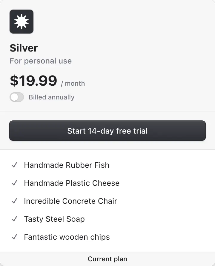 Add subscriptions to your B2C or B2B application without having to write payment code, custom UI, or wrangle webhooks. Just drop in React components and start earning recurring revenue.