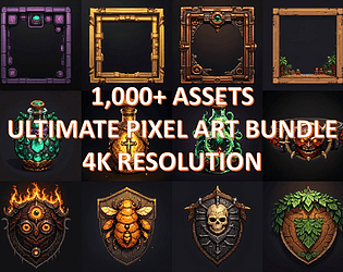 1000+ Premium 4K Pixel Art Assets! Mega RPG Pack: Potions, Rings, Swords, Shields & Frames. Professional Game-Ready Kit!
