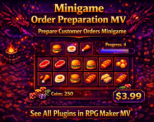Order preparation minigame for RMMV, with clickable grid, progression, and rewards. Optimized screens (1920×1080).