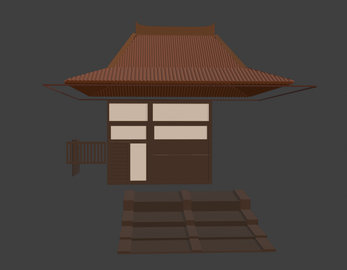 Stylized traditional Japanese house 3D model suitable for games, stylized environments, and world building. Includes individual decorative wall designs.