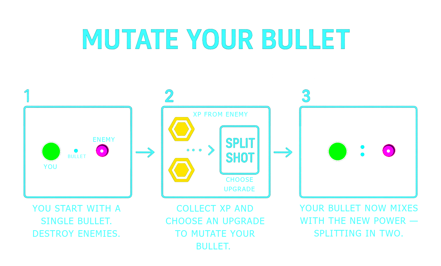 - Upgrade system – stack crazy bullet mutations with every level-up.