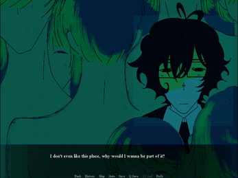 ok but yeah THIS GAME IS PEAK??? it's a fever dream executable using ren'py, and i mean that in the best way possible. i love the disjointed monologues of the protagonist since most vns forget that people's thoughts are very disconnected.