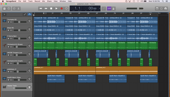 I mixed this project in Garageband. Most of the sounds for this composition came from my Roland Juno DS-61, but I ended up supplementing with some stock Garageband plugins that felt closer to the GBA music sounds. The bass is a single triangle wave track that I bounced from Famitracker because that was the closest and most consistent bass sound I could get to some of the music in RSE. There are only a few instruments here but I wanted to make sure the brass was front and center, because RSE is all about trumpets and french horns!
