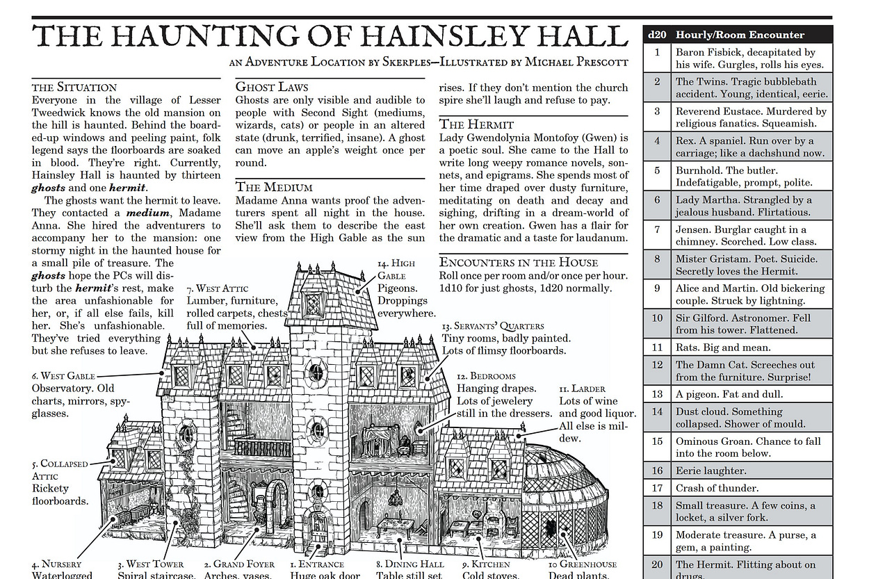 One Page Dungeon Review #2 - The Haunting of Hainsley Hall
