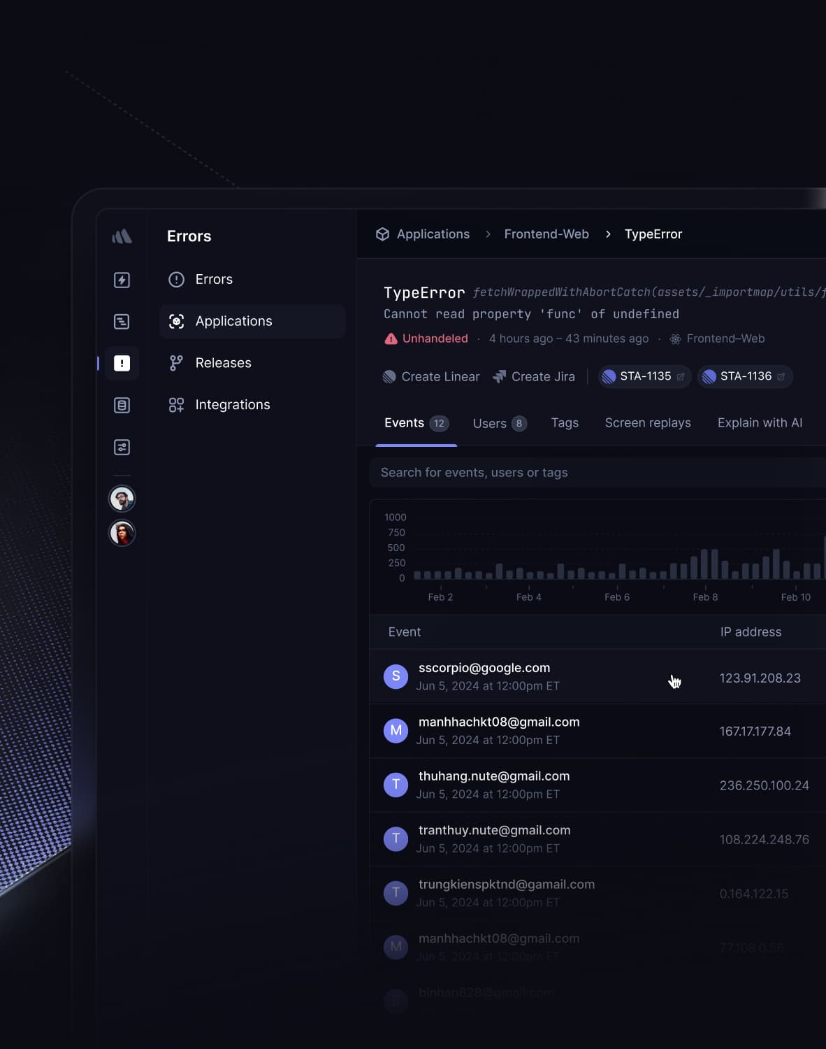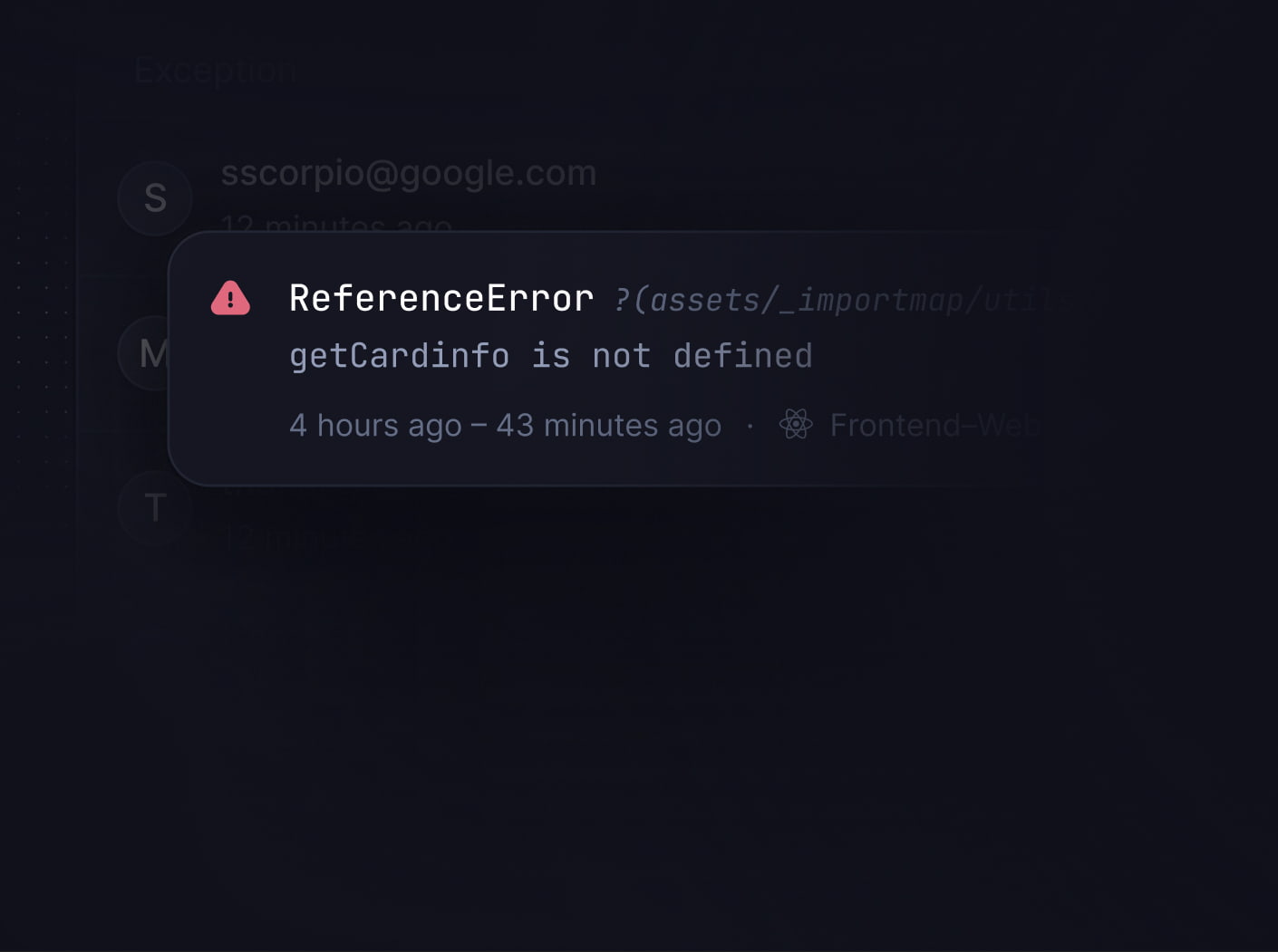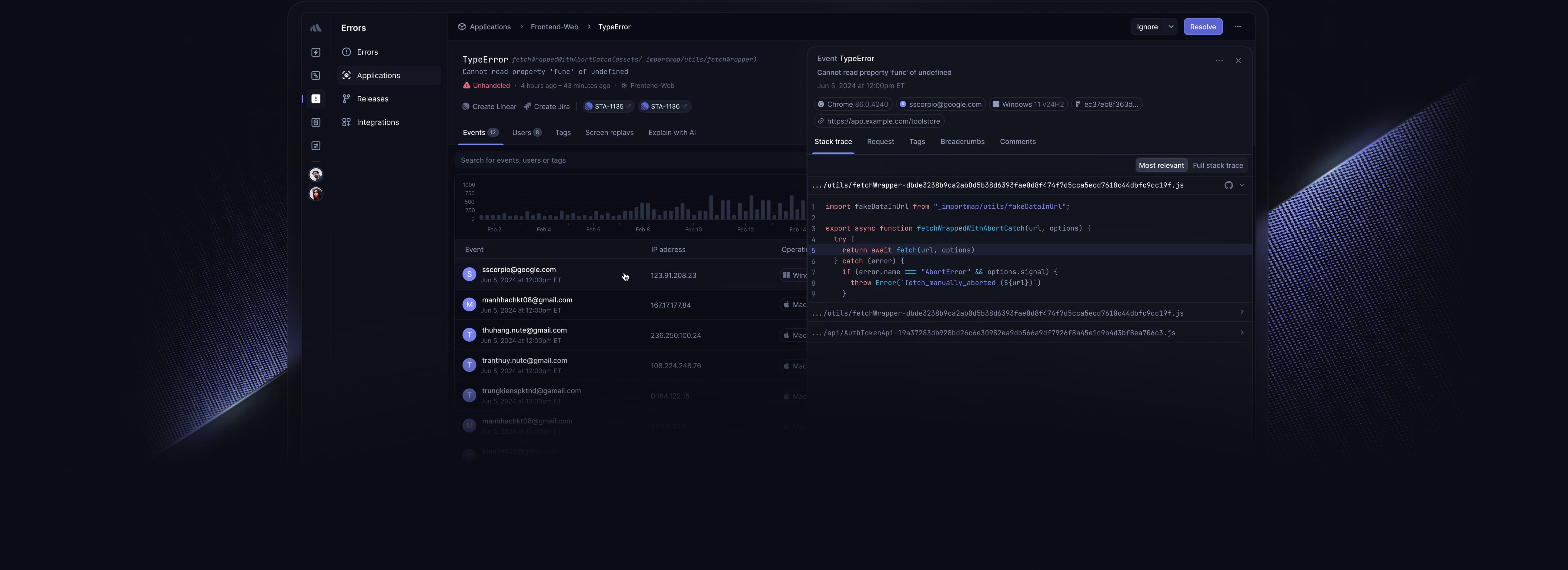 Don’t waste time reproducing errors manually. We provide you with browser context, backend environment variables, and stack traces so you can focus on fixing.