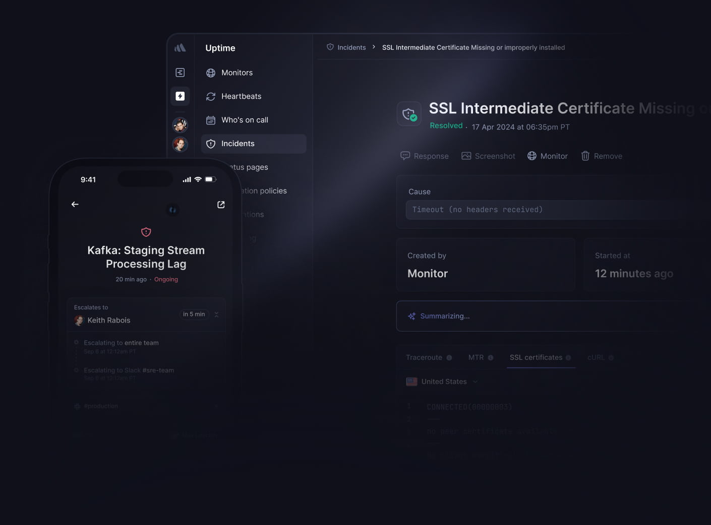 Schedule on-call duties, create escalation policies, and post incident updates on a status page.