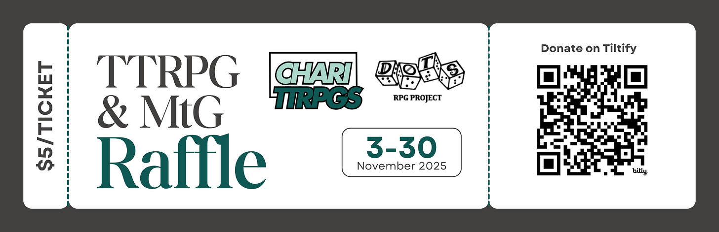 That concludes our updates for now. Be sure to follow ChariTTRPGs on bluesky to see the latest RTs for D&D and TTRPG charity content (and DM us your charity content tweets so we can retweet them!) If you’re looking to join a charity focused TTRPG community, consider joining our discord.