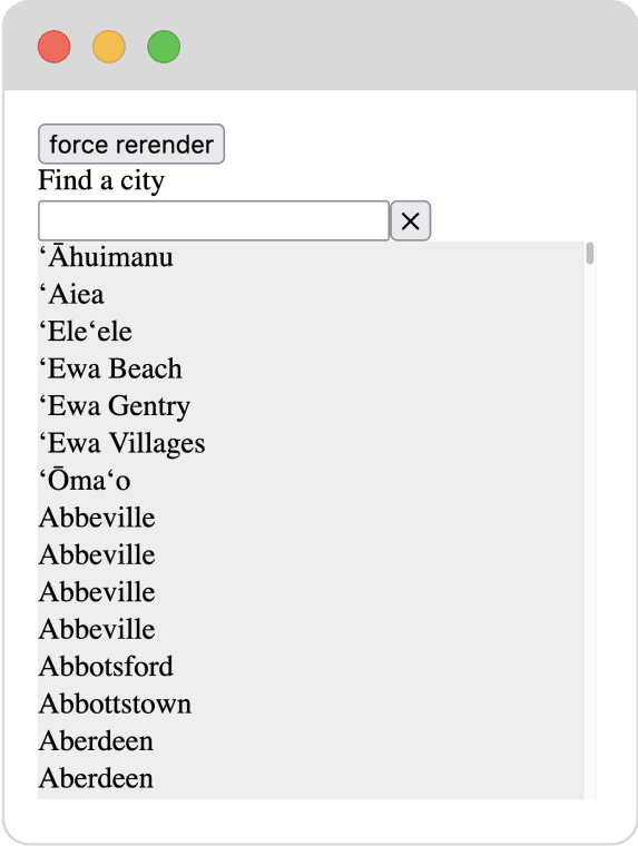 By the end, you'll develop projects such as a blog search, integrating non-React UI libraries, tic-tac-toe, new user form, performant globe, calculator, counter, searchable list of cities, and building a React Server Components framework from scratch.