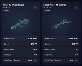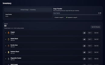 * Sell shards to purchase vessels, fuel, upgrades, etc.