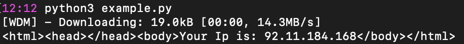 Decodo()– handles the proxy authentication;webdriver_example()– installs the required drivers and gets a response from the target. In this case, the target ishttp://ip.decodo.com/.