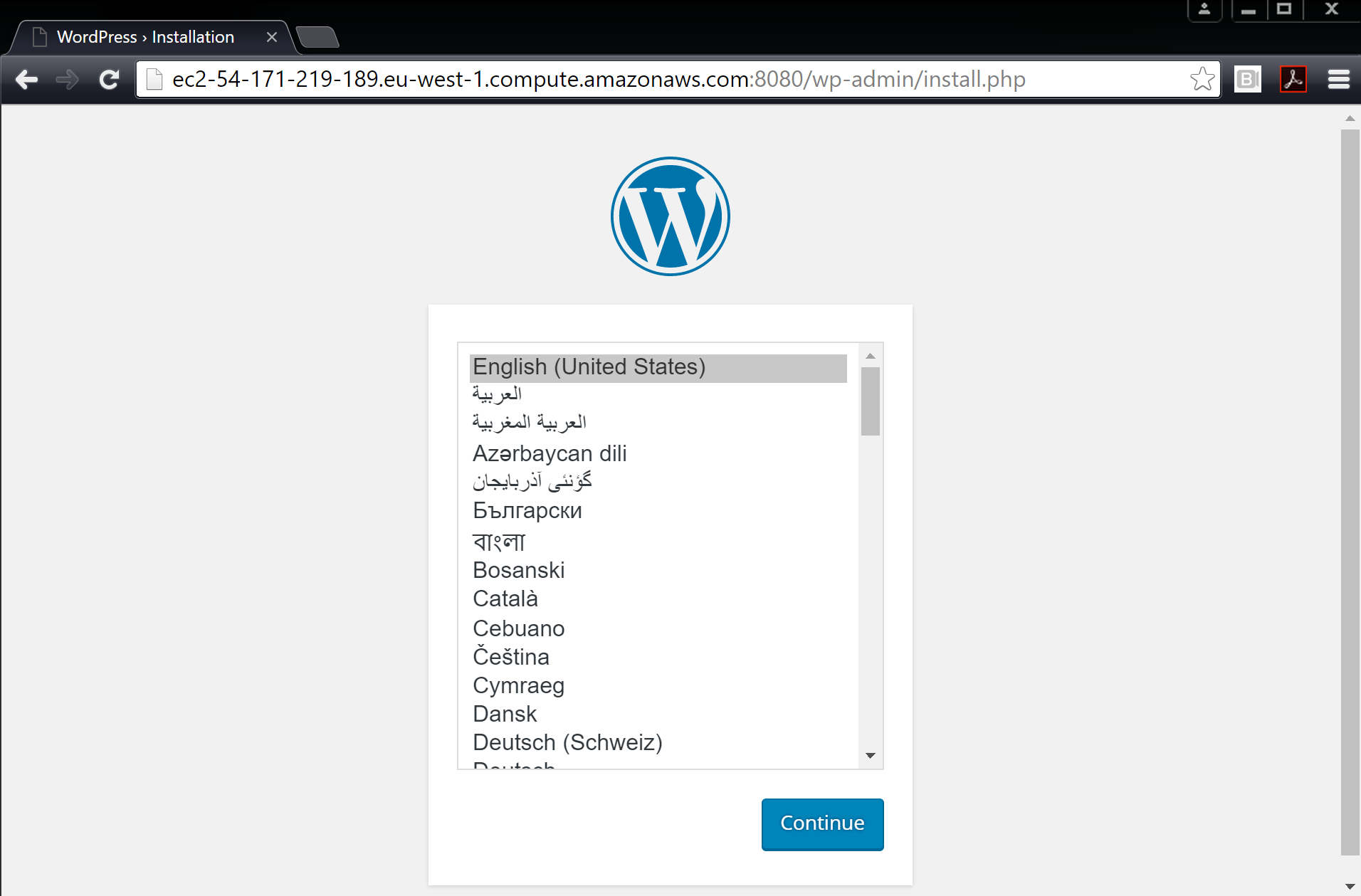 docker-composeto complete this step. If your lab machine does not already have Docker Compose isntalled, you can install it with the following commandssudo apt-get updateandsudo apt-get install docker-compose.$ docker-compose up & Pulling mysql (mariadb:10.1.10)... 10.1.10: Pulling from library/mariadb 03e1855d4f31: Pull complete a3ed95caeb02: Pull complete <SNIP> mysql_1 | Version: '10.1.10-MariaDB-1~jessie' socket: '/var/run/mysqld/mysqld.sock' port: 3306 mariadb.org binary distribution wordpress_1 | [Tue Jul 26 12:51:36.992860 2016] [mpm_prefork:notice] [pid 1] AH00163: Apache/2.4.10 (Debian) PHP/5.6.18 configured -- resuming normal operations wordpress_1 | [Tue Jul 26 12:51:36.992956 2016] [core:notice] [pid 1] AH00094: Command line: 'apache2 -D FOREGROUND' -