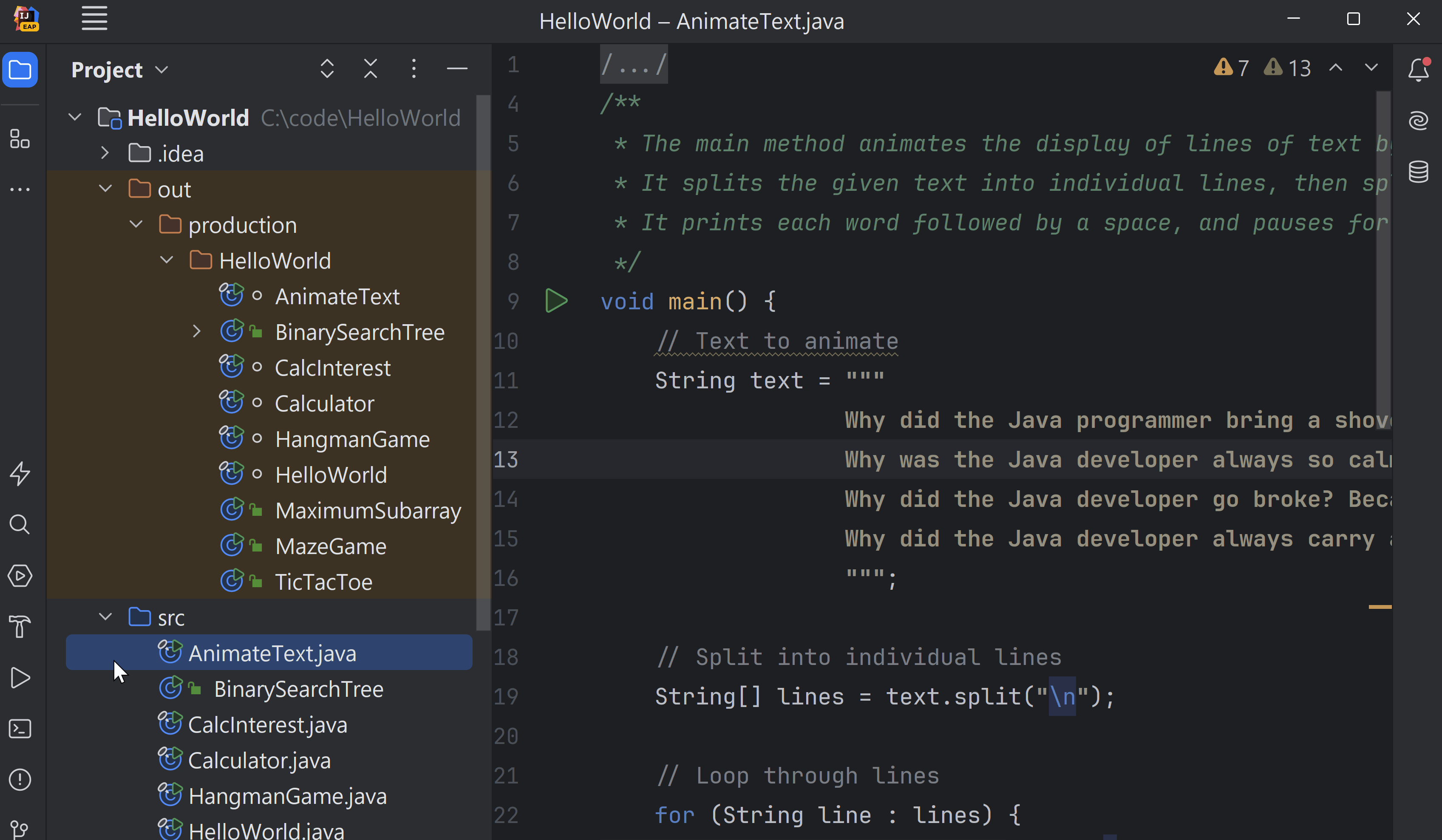 通过IntelliJ IDEA的反编译器功能为源代码文件AnimateText.java反编译的类: