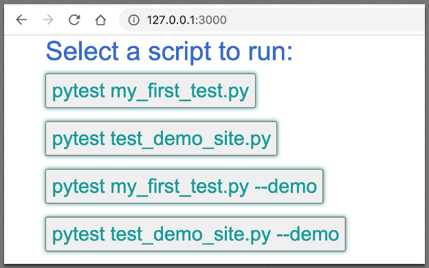 Click on a button to run a SeleniumBase example test.