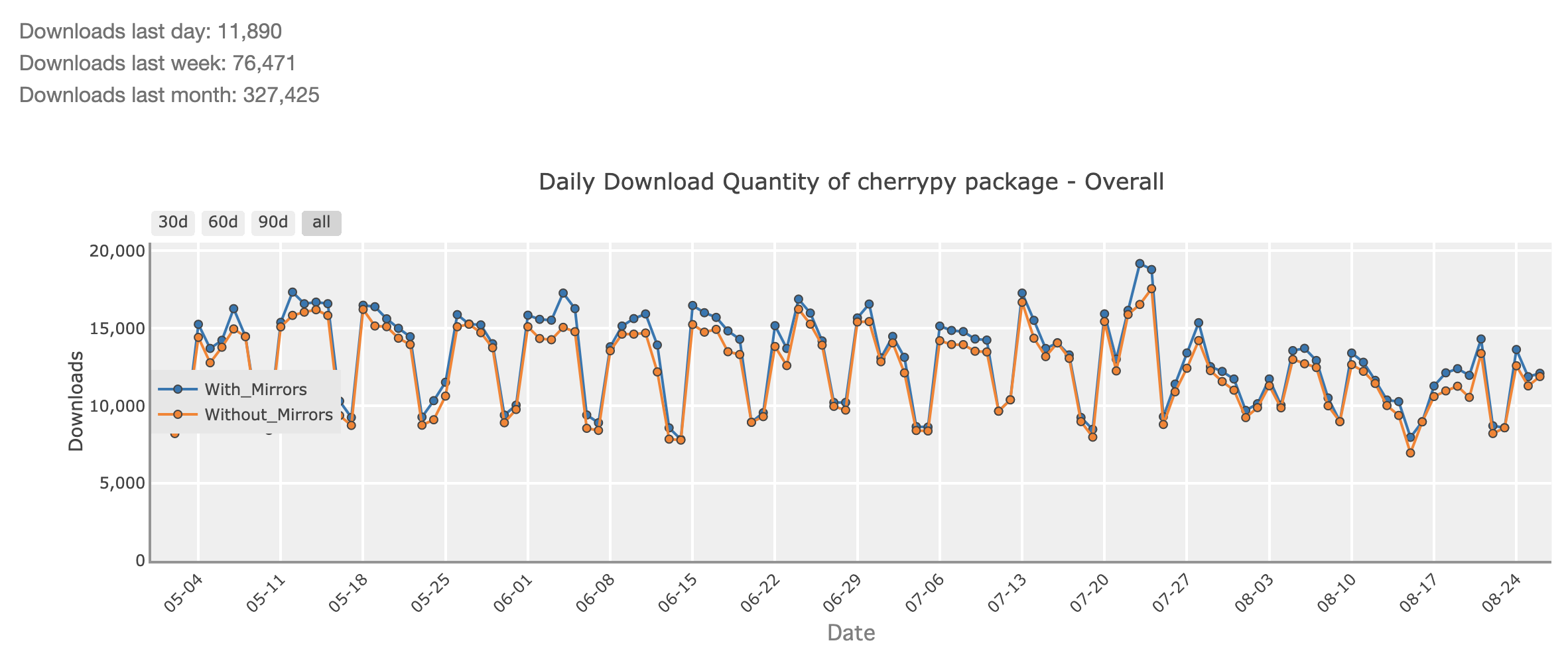 10K+ download per day: https://pypistats.org/packages/cherrypy