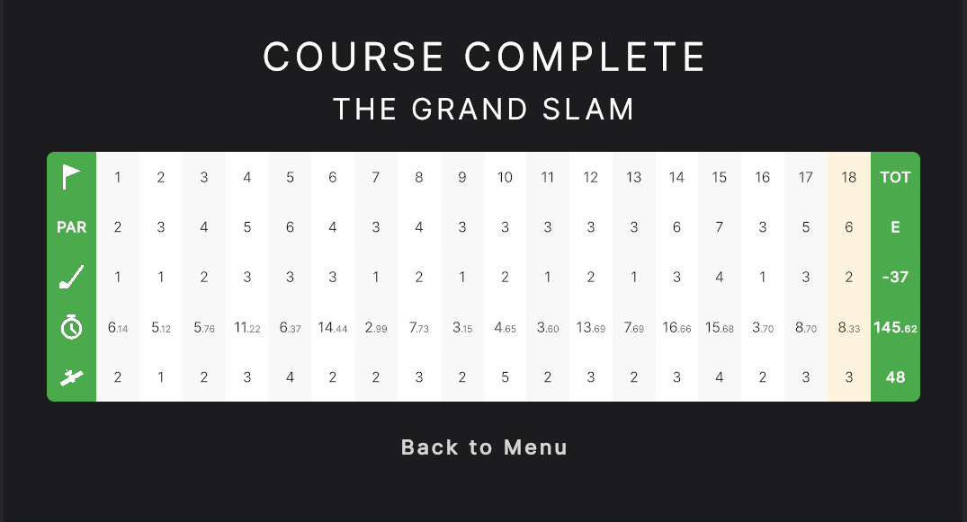 That was a lot of fun. I spent way more time than I expected trying to perfectly line up shots to grab as many satellites as I could while staying under par. That “just one more tweak” feeling was real.