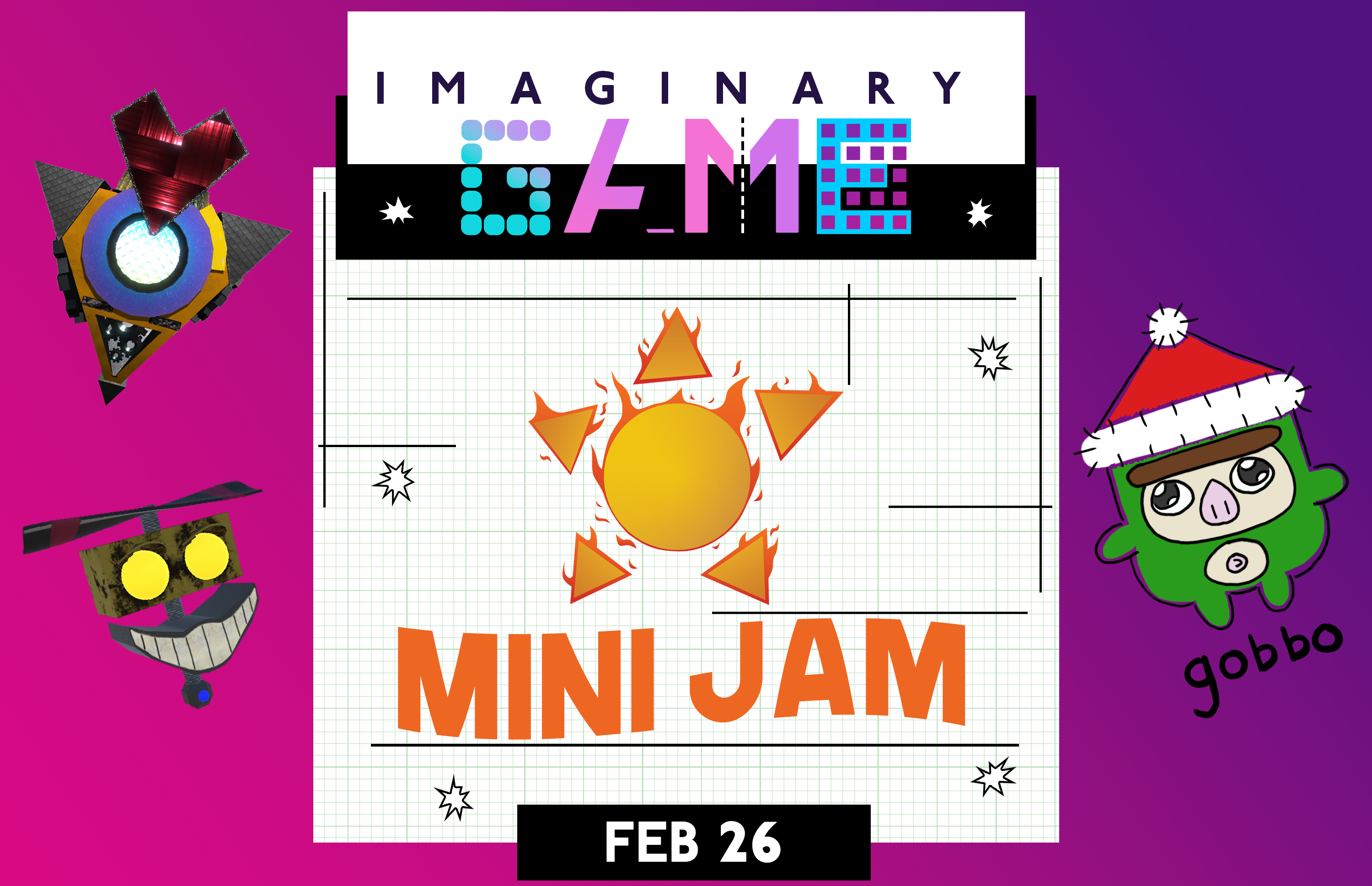 The Imaginary Game Mini Jam is a once-a-month, weekend game jam with provided assets to help you make the games of your dreams. It's the lovable sidekick to the Imaginary Game Jam, an annual summer game jam with cash prizes!