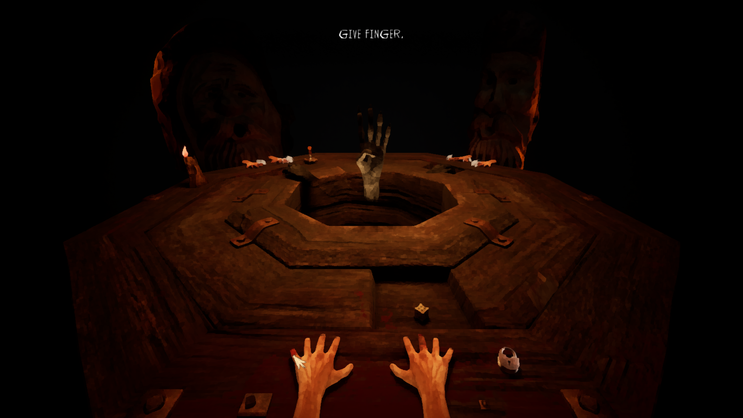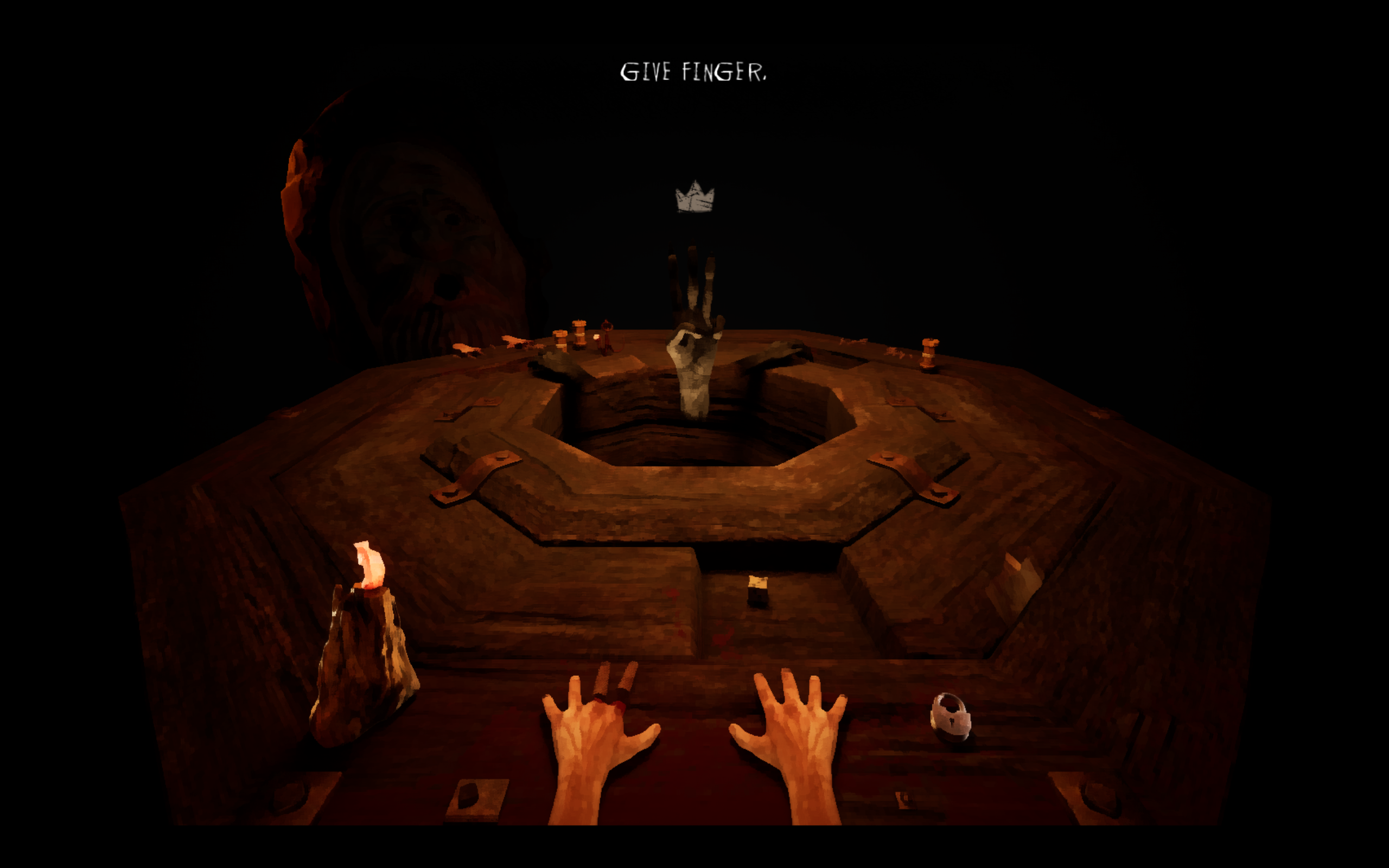 Amazing aesthetics. You really nailed the Inscryption vibe, especially with those snappy camera movements. The scanned NPC models were a perfect choice. I liked the highlight effect for selecting items and fingers, although it was sometimes hard to see on NPC’s fingers, particularly their thumbs.