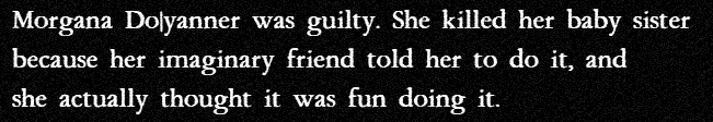 Man, this game is really cool but there's also some sad things, like a 12y girl that k--led her baby sister cr--hing her eyeballs with her bare fingers. Her imaginary friend was actually... Souless. With a mental problem called "borderline personality disorder", she killed her 11 month baby sister.