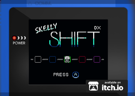 Launch Sale! -In Skelly Shift DX, you move around on a grid, tap once and you'll move to the next square, direction and timing is key in this challenge-room filled game. For Game Boy Color and PC!
