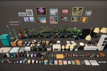 - Furniture, food, and decorative props for interior scenes