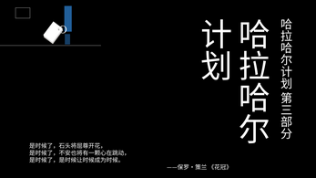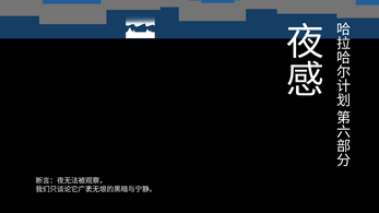 《哈拉哈尔计划》是一纸诗化的情书,也是一部短篇视觉散文小说。它是无性的,也没有立绘、没有人名、不含爱字。它是这个故事的前半段,但它被蓄意删节的后半段不会被补上(至少我不会补上)。