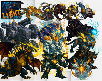 A stylized pack of original Thunder monsters for JRPG-style battles and fantasy RPGs. Drop-in enemy art with strong silhouettes, dramatic lighting and a focus on game-ready readability.