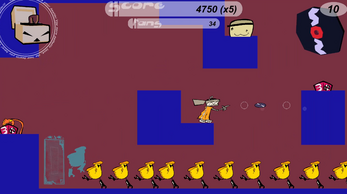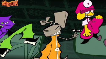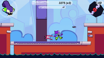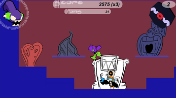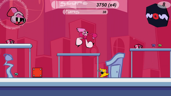 The artstyle is HEAVILY inspired by shows such as Invader Zim and Super Milk Chan, along with all kinds of 2000s internet animations. Music is inspired by many 2000s video games (e.g. Jet Set Radio) and compliments the game's bombastic vibe. This crazy cartoony atmosphere is not just an aesthetic thing though, some levels have a chance to take some WIIIILD turns that'll keep even the LOWEST attention spans entertained.