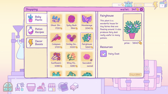- You can buy new Plants and Potion Recipes in the Shop