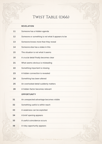 The Twist Oracle is a lightweight oracle that turns simple Yes/No answers into narrative twists for solo RPG play.