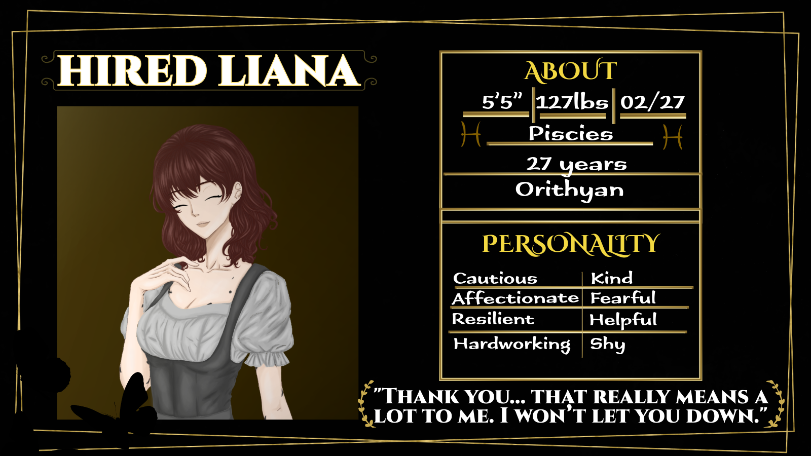 Eu estou completamente apaixonada pelo jogo, tudo é extremamente incrível, a história, os personagens, o design. Você tem muito talento mesmo sendo iniciante!!! estou muito ansiosa pra continuar a história, e principalmente pra avançar na história com o Kael kkk parabéns pelo trabalho!! espero que você também faça novos projetos
