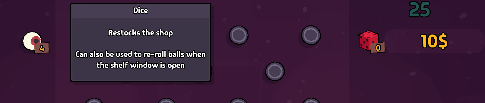 There is a bug with glue balls. The tooltip hover stays on the location in the shop that I took a peg away from with the glue ball. So it still says "pizza" where a pizza peg originally was.