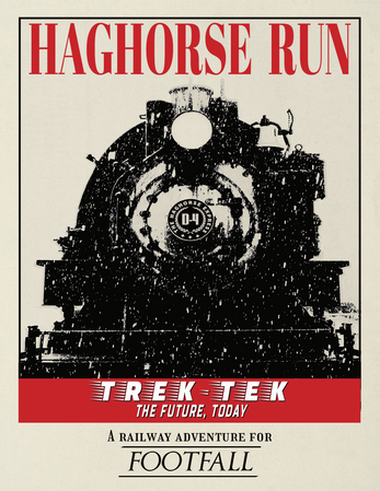 Haghorse Run is a 30 page adventure for Footfall RPG set aboard a luxury passenger train on a 3 day voyage between provinces.