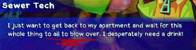 The only minor thing that I noticed on my playthrough is a minor grammar error.