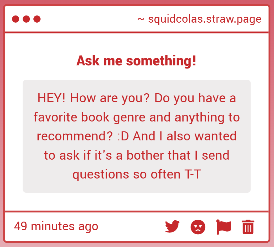 And I don't mind the questions! I just might not always answer them in a timely manner. I have a whole bunch of messages to catch up on from the past year. But feel free to ask whatever and I'll do my best to get to it all eventually.