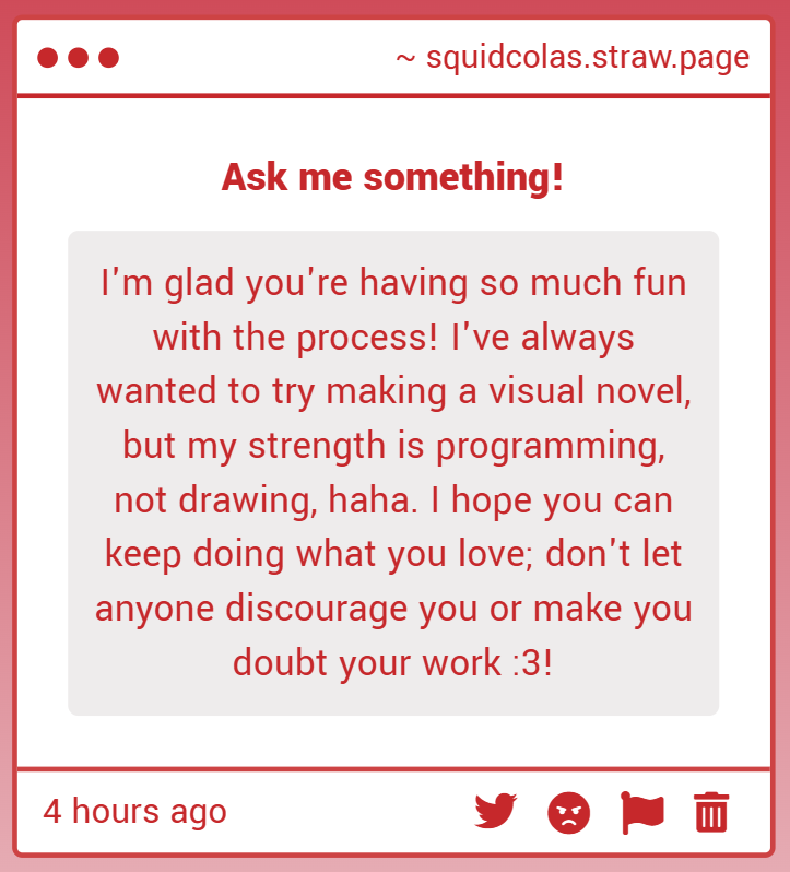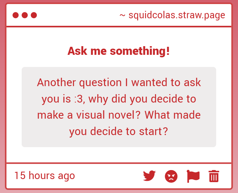 I got more into playing VNs and dating sims, so I decided to try making my own. I didn't know how to code at all, but I still planned to make a horror dating sim... then a fantasy BL visual novel... and then I started working as a sprite artist for other devs. So IMI is far from my first step into game dev.