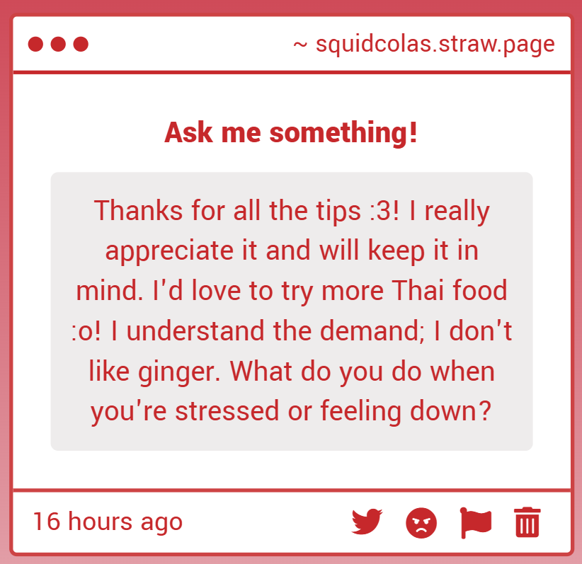 Hmm... I get stressed pretty often, but I oftentimes just try to distract/redirect myself by watching a movie, show, or something on youtube. Making a quick snack or drink (not alcohol lol) can also help sometimes. I also occasionally engage in retail therapy... though it's probably not good for me.