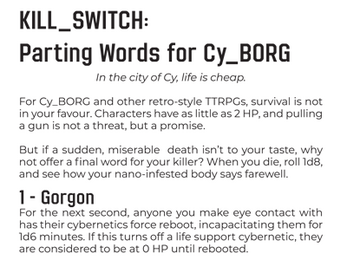 | Tags | Cyberpunk, Tabletop role-playing game, zine |