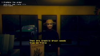 - Gameplay: Narrative walking simulator with a simple game loop: take orders from customers, craft plants and serve them.