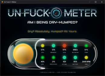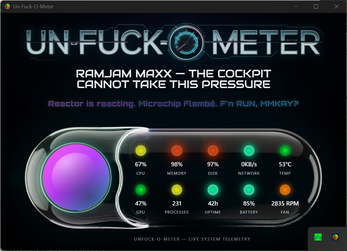 The Un-Fuck-O-Meter condenses complex telemetry into a single, color-coded judgment.