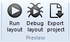 The debugger can be run from the ribbon Home tab, the quick-launch bar, by right-clicking a layout or project in the Project Bar, or by using the keyboard shortcut Ctrl+F5.
