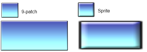 The 9-patch plugin allows an image to be resized by stretching or tiling the edges, corners and fill separately. It is useful for conveniently making resizable windows or user interface elements that can take any size and still appear correctly. The image below demonstrates how a 9-patch looks compared to a Sprite object, which just stretches its entire image.