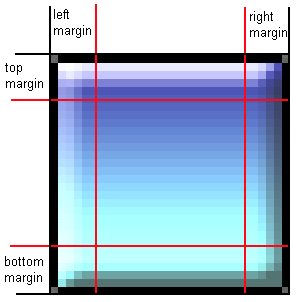 The edge and fill sections can be stretched or tiled independently, allowing for a better appearance when resized. Take care not to set the margins such that sections overlap or have a zero size, since this may cause the object to display incorrectly.