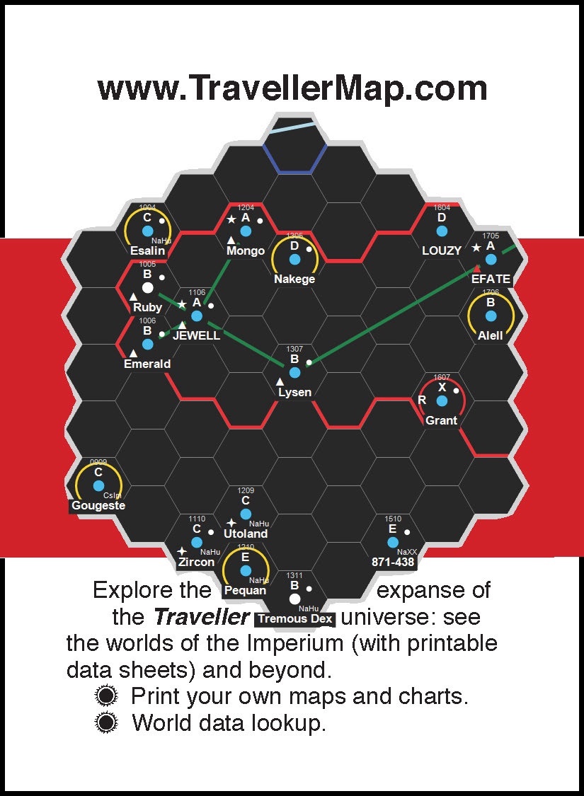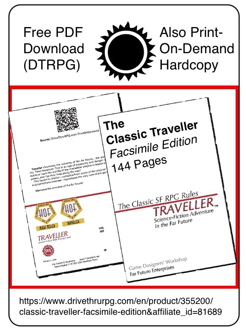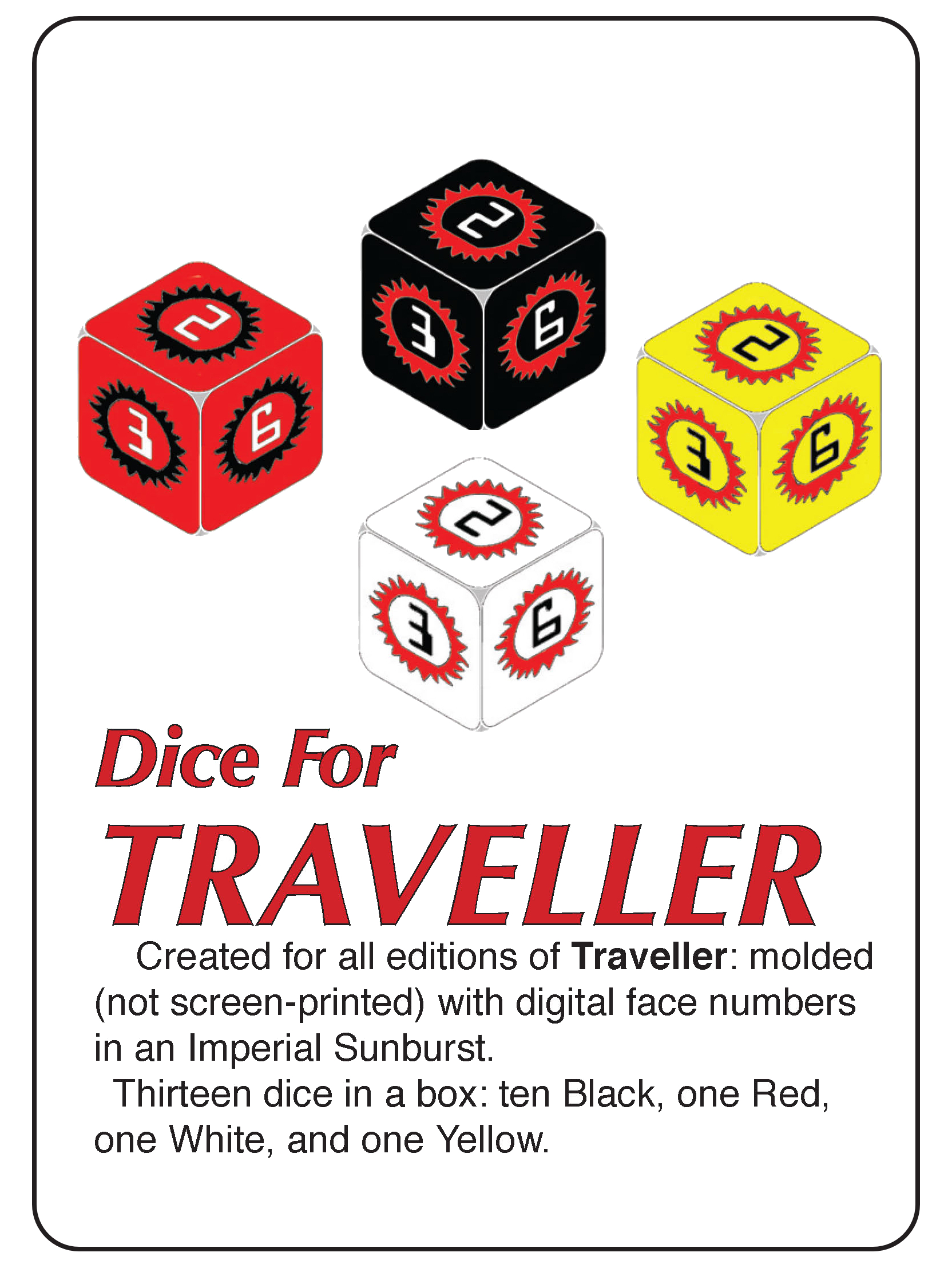Welcome to Traveller! We observe three Traveller-themed holidays through the course of the year: May 1 commemorates the distress call of the beleaguered Free Trader Beowulf. July 22 is Traveller’s publication day (published July 22, 1977 at the Origins Game Fair in Staten Island, New York). August 29 is an arbitrary date called the Emperor’s Birthday. We're currently in Mayday mode!